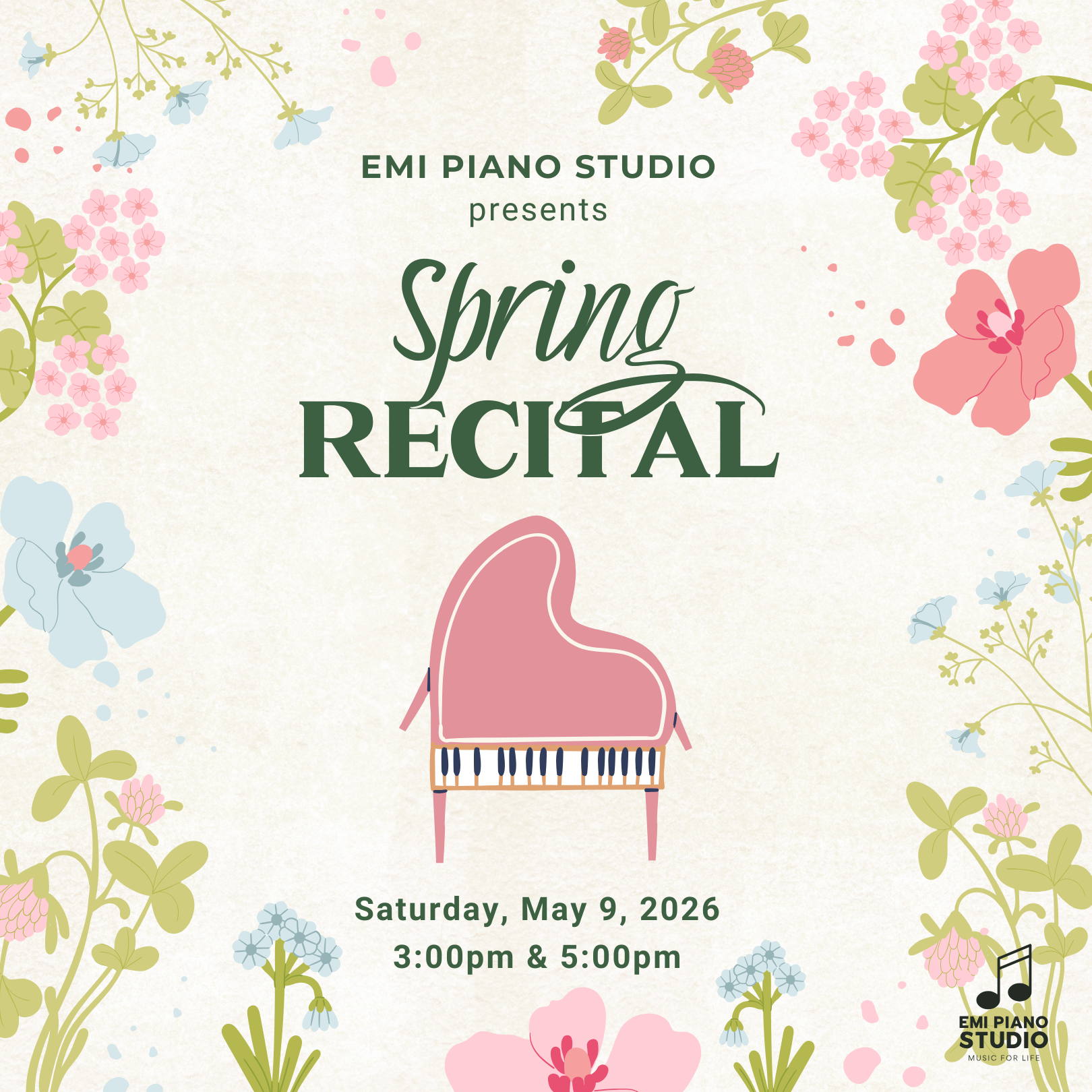 Join us for our Spring Recital, where our students will showcase the music they’ve been working on and celebrate their progress together. 🎹✨